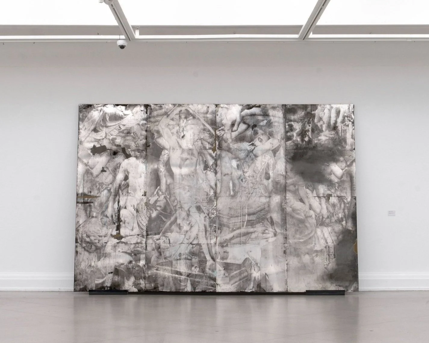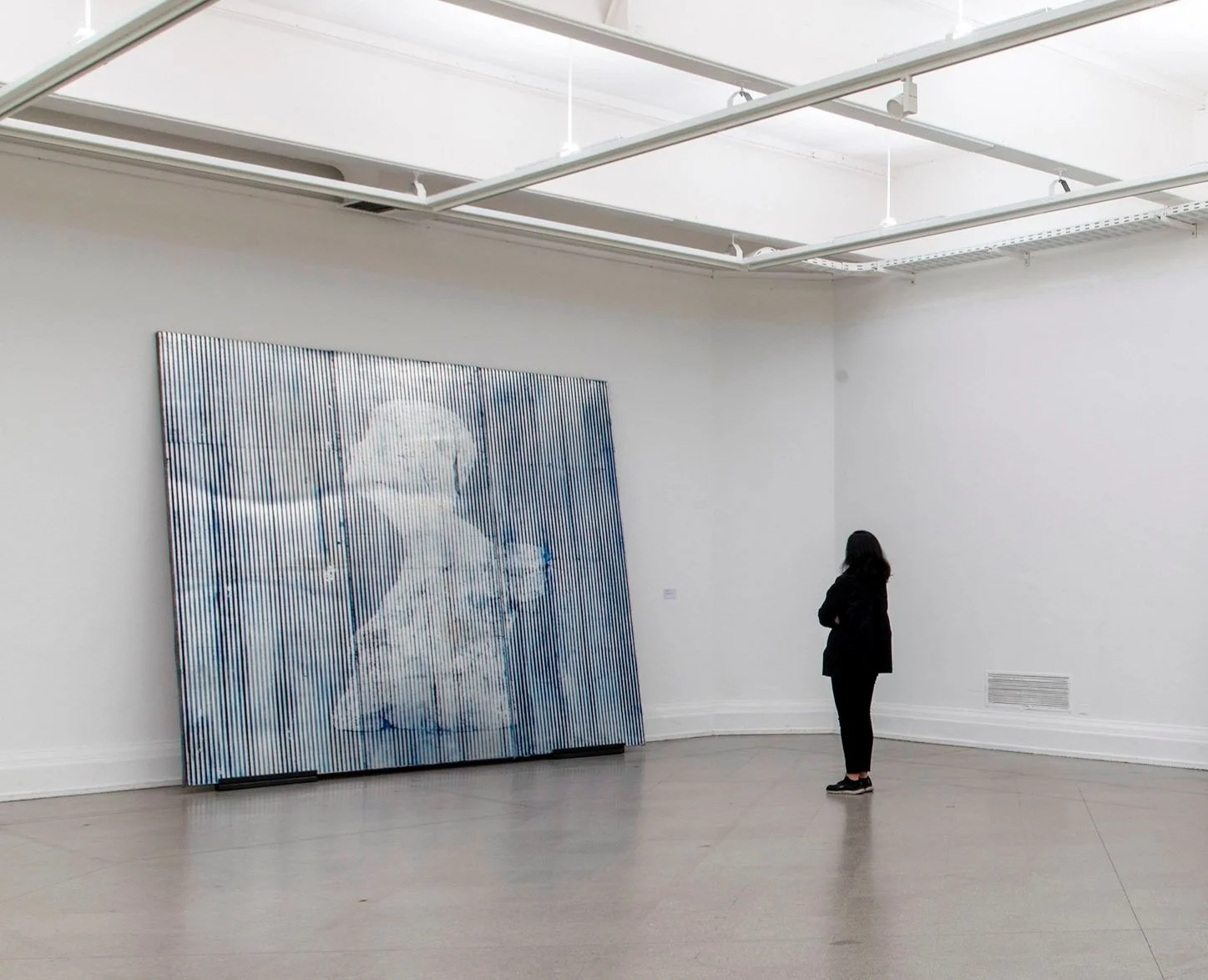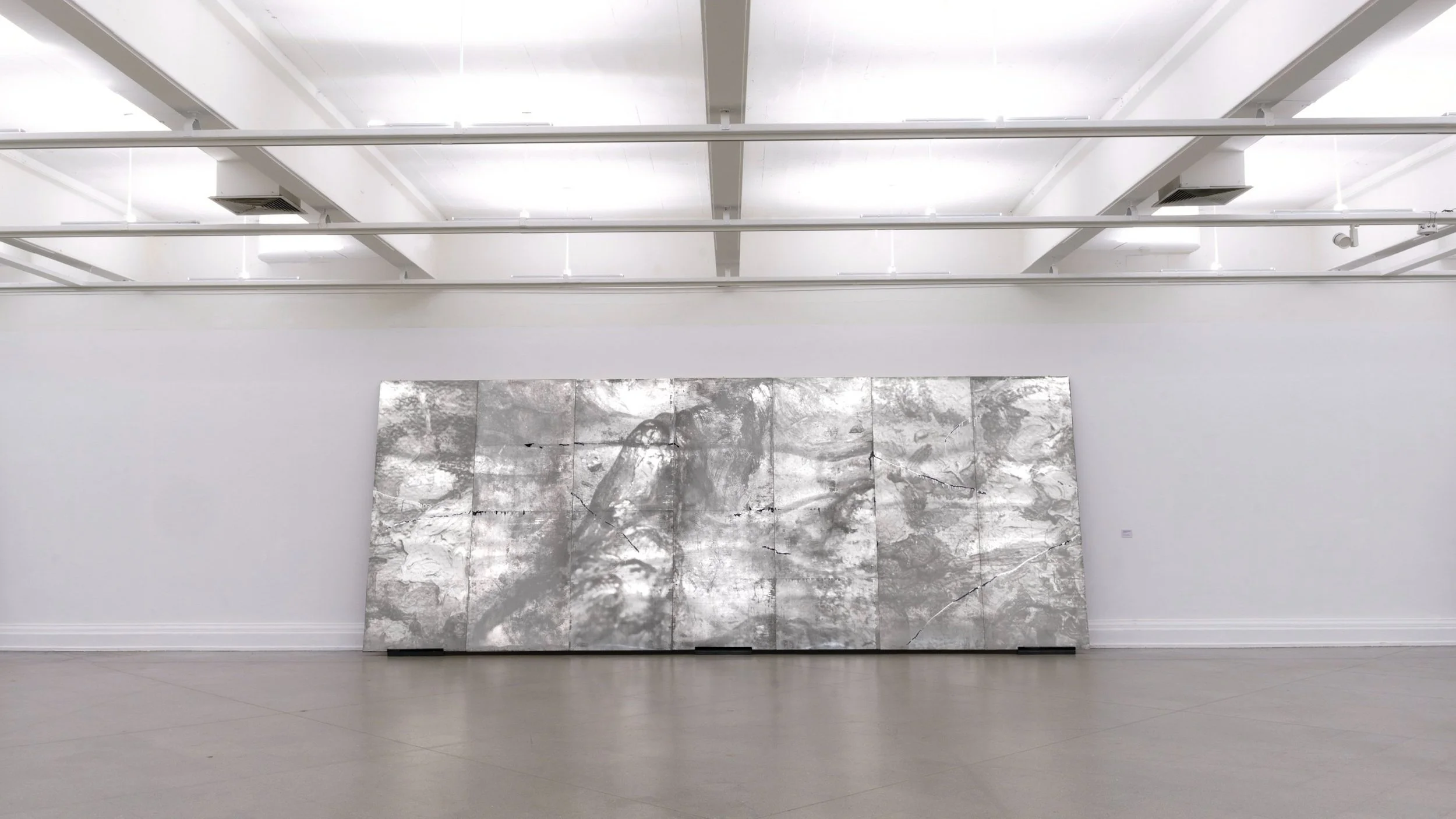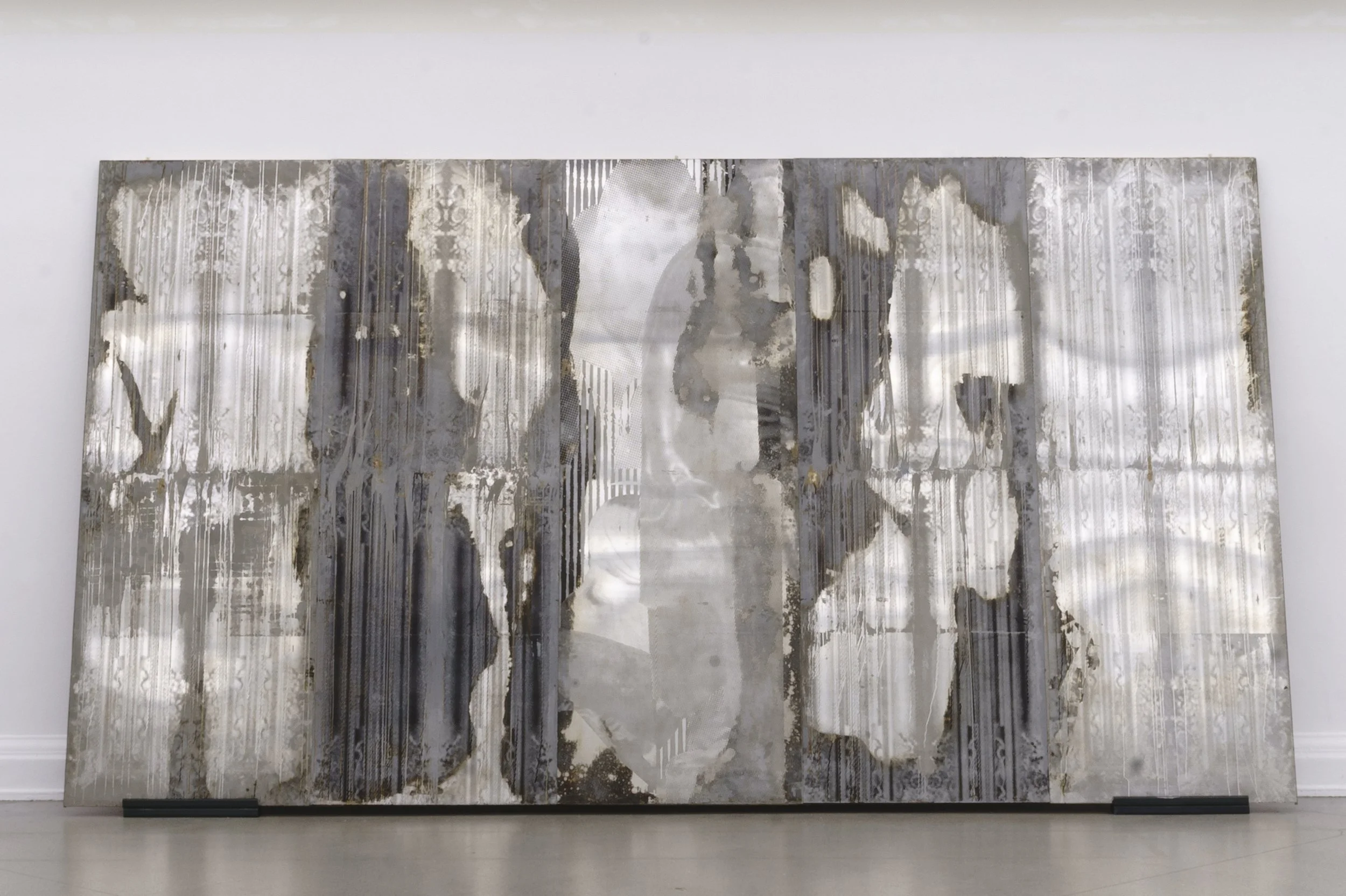 "Gray Matter" comprises a series of large-scale paintings that resonate with the permanent collection of the Museo Nacional de Bellas Artes. The works delve into the realm of painting to underscore the cyclical and secular interactions embedded within our visual history. Exploring themes such as time, chance, change, creation, and destruction, the pieces review, within an abstract and minimalist matrix, the way in which reality and history have been materially processed as images. In crafting "Gray Matter," Franco incorporated images sourced from the museum’s extensive collection—spanning paintings, sculptures, ornaments, documents, and press materials. Each image, meticulously captured, was then transferred onto thick aluminum panels through a chemical reaction induced by acid contact with the metal. This initial process laid the foundation for a series of immense paintings, some measuring up to 300 inches wide, seamlessly blending intricate industrial techniques with subtle artisanal interventions. The exhibition propose a reflection on the material condition of the image, to inquire into the technical deployment that modulates, transforms and reorganizes the visual experience, that is to say, to appeal to the technical history of images, which is essential when thinking about the images of history.